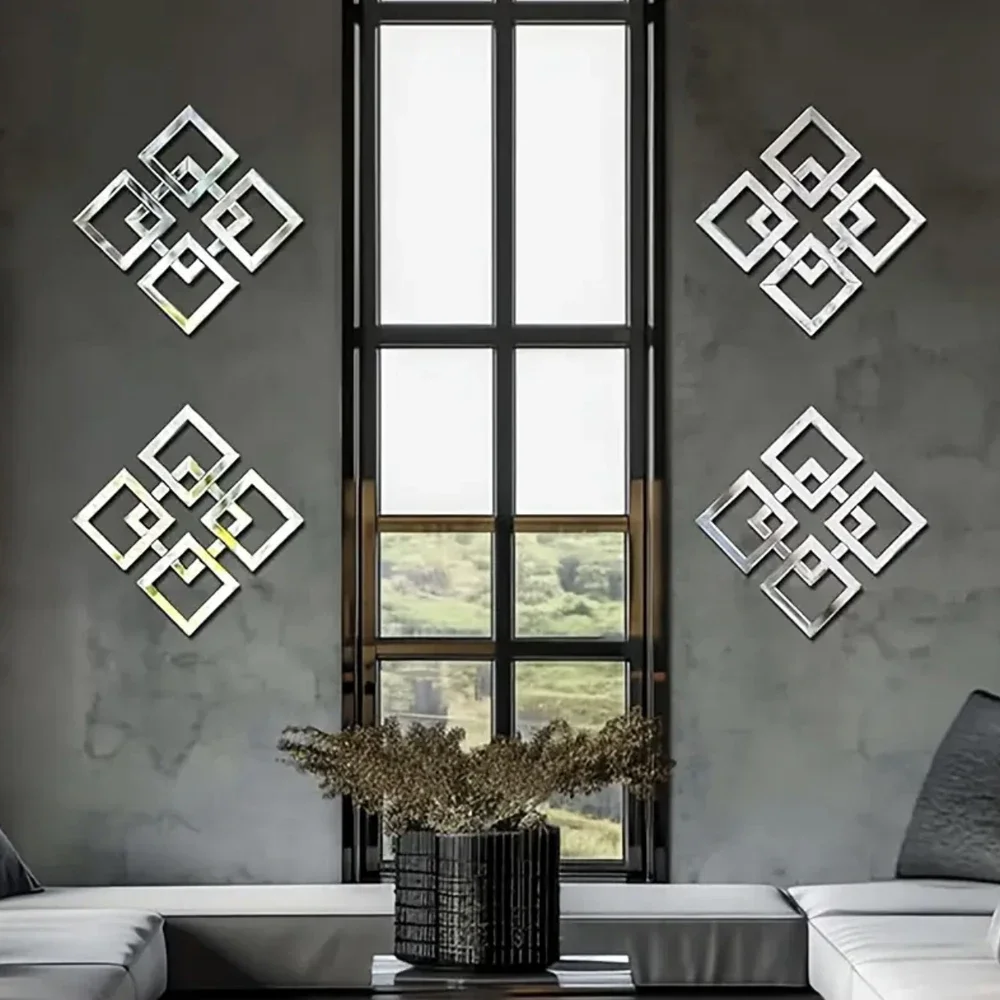 4/8/12pcs 기하학 거울 벽 스티커 아크릴 사각형 벽 데칼 자기 접착제 장식 스티커 DIY 룸 홈 장식