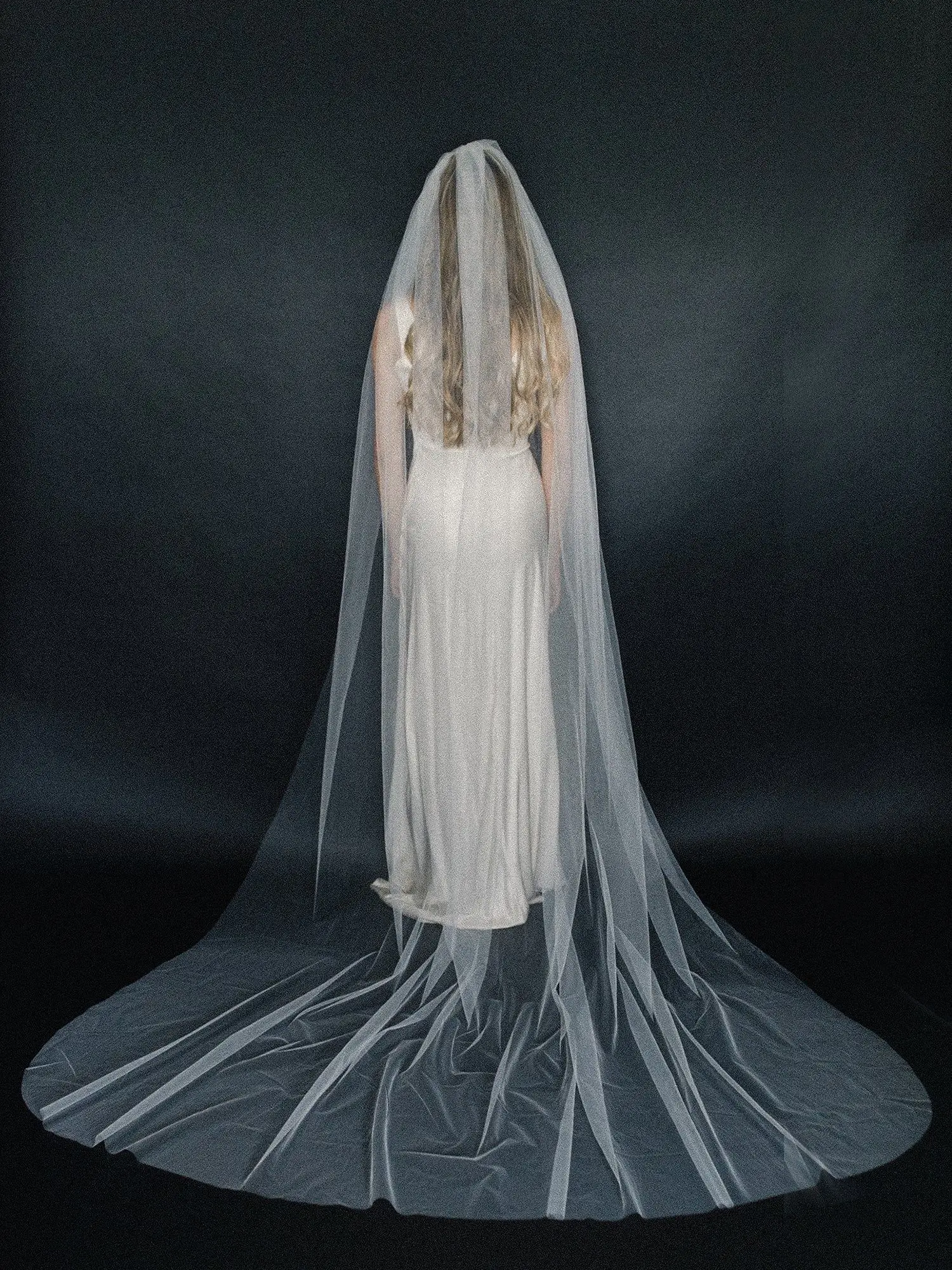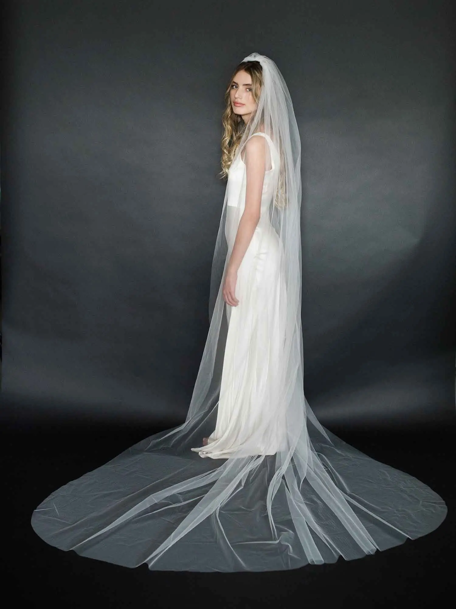 YouLaPan 부드러운 얇은 명주 그물 싱글 레이어 신부 결혼식, 간단한 베일 컷, 가장자리 벨로 드 노비아 라르고 만틸라, 맞춤형 웨딩 베일, V30